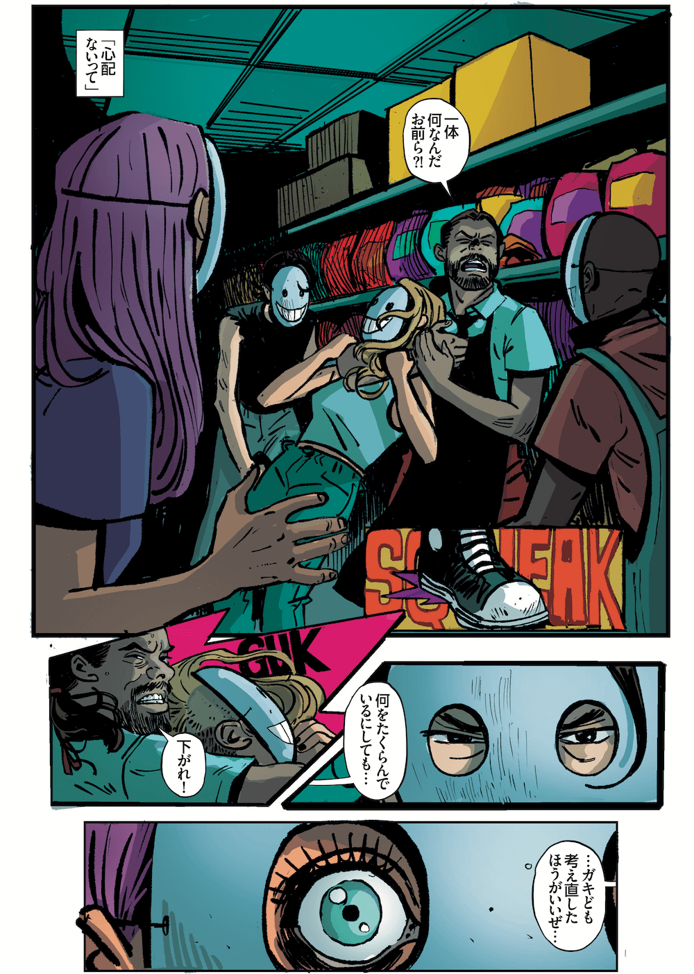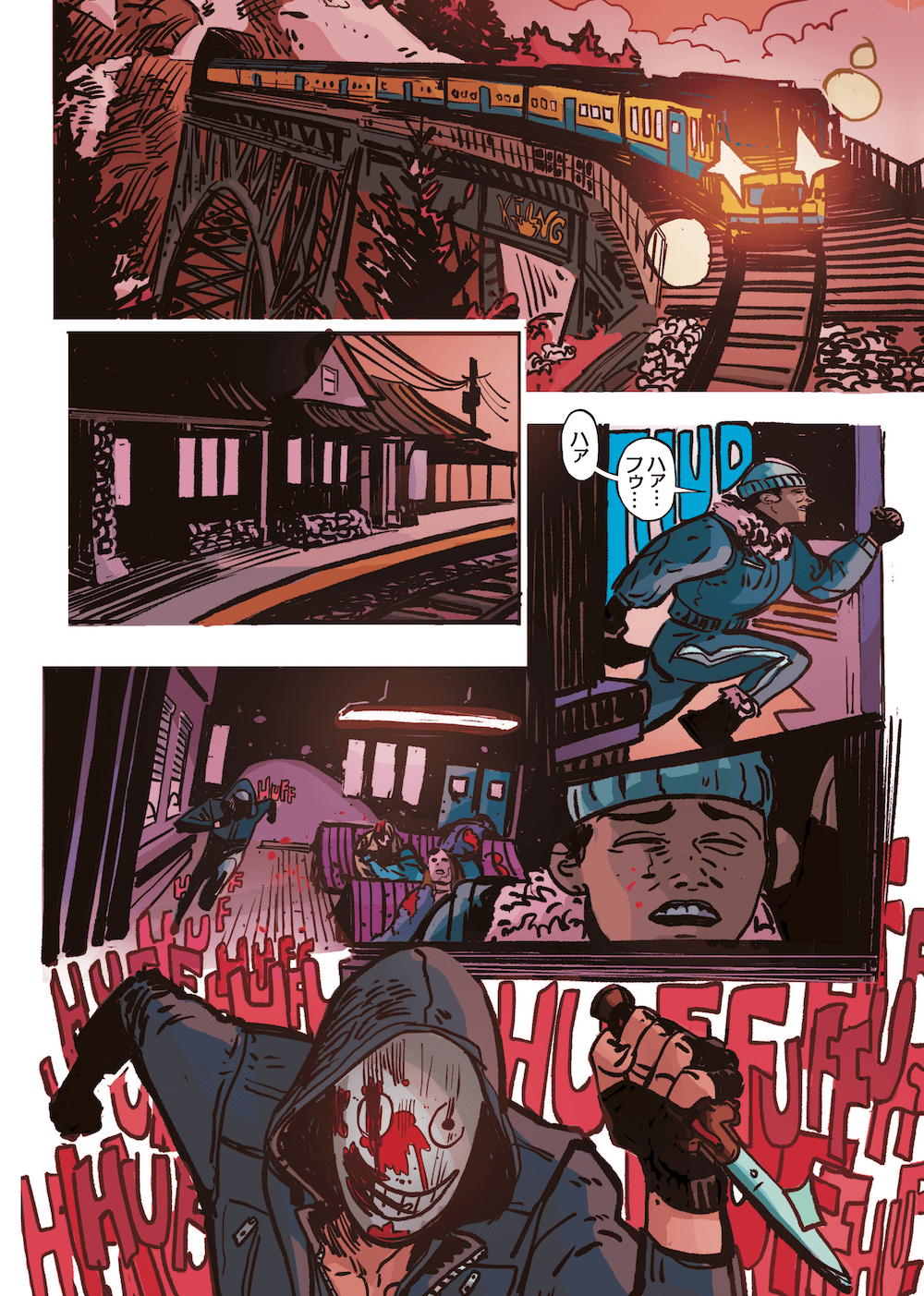 『Dead by Daylight リージョン・ストーリー』のストーリーを手がけたのは『Ms. Marvel Stretched Thin』(2021)のナディア・シャマス。マンガをディロン・スヌーク、彩色をエミリオ・レッチェ、原著レタリングをジェイム(AndWorld Desing)、邦訳はライター/翻訳家の齋藤隼飛、作家としても活躍する暴力と破滅の運び手が担当した。