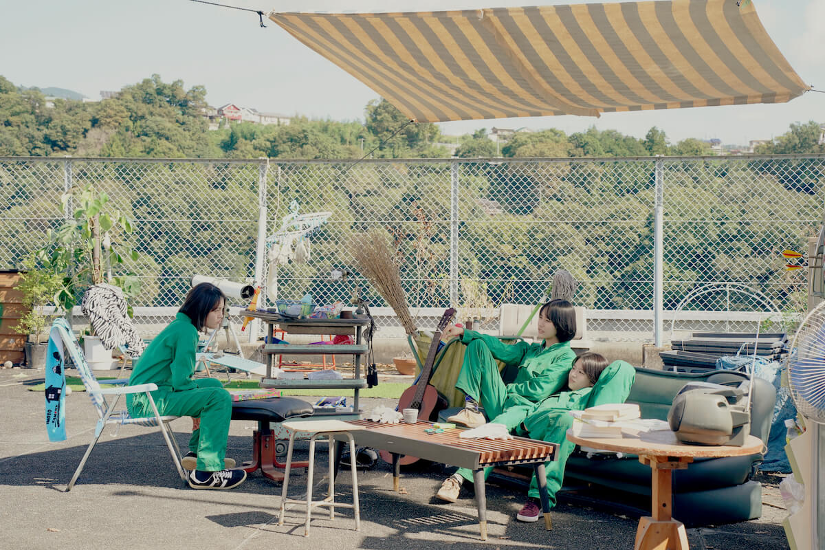 今回解禁となったポスタービジュアルは、同好会「オール・グリーンズ」の中心メンバーである朴秀美、美流紅、岩隈の3人がグリーンの作業着姿で捉えられており、まっすぐな⻘春とは少し違う、作品の持つラフでオフビートな世界観が切り取られたビジュアルとなっている。
