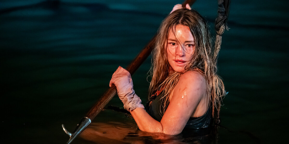 主人公・海を愛するサーファー、ゼファーを演じるのはアメリカ・テキサス州出身のハッシー・ハリソン。『ダンジョン・クエスト』(20)、『ほぼノートルダム』(23)などの映画に多数出演し人気ネオウエスタンTVシリーズ『イエローストーン』シーズン5でバレルレーサーの「ララミー」役を再演。2022年には、他のキャストとともに全米映画俳優組合賞のアンサンブル賞(ドラマ部門)にノミネートされるなど多岐にわたって活躍している。また役者業とは別に、世界中を旅する冒険家でもありスカイダイビングやスキューバダイビングを楽しむアクティブな一面を持ち、本作でサメと危険人物という二つの恐怖に立ち向かう迫力あるアクションシーンで存分に発揮されている。