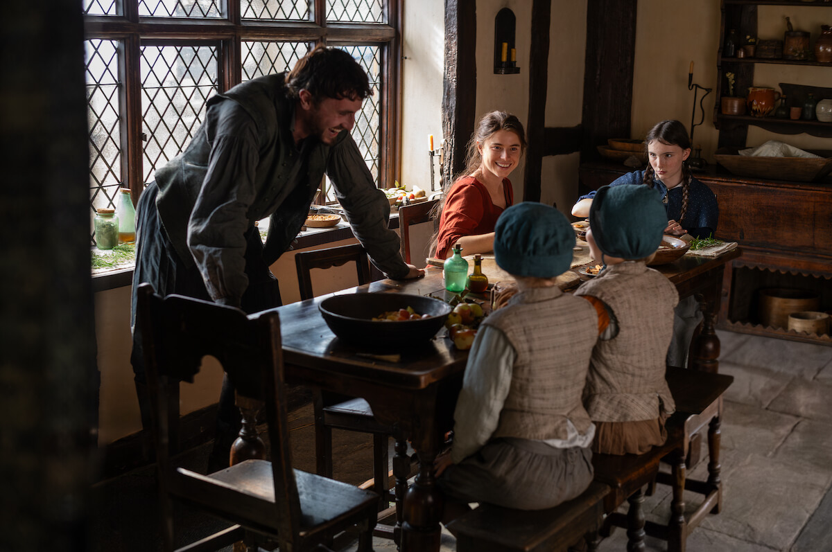 この度『ハムネット』から解禁されたシーン写真は全7点。森の中に佇む家で夫ウィリアムと妻アグネス、そして3人の子どもたちが過ごす穏やかな家族の団欒を捉えたカットをはじめ、キッチンで薬草を手にするアグネスの姿、豊かな植物に包まれた森の中で密やかな時間を重ねるウィリアムとアグネス、さらに息子ハムネットと戯れるウィリアムの姿が収められており、いずれも、静かな幸福と愛情がにじみ出てくるような印象的なショットとなっている。