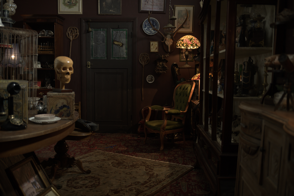 併せて、メイキングカット6点も解禁。ダーシーが営む骨董品屋の内観、ダーシー役のキャロリン・ブラッケン、メイク中のテッド役のグウィリム・リー、オリン・ブール役のタイグ・マーフィーとダミアン・マッカーシー監督、精神病棟の患者、木製マネキンの配置を決めている場面など、撮影の裏側の様子が映し出されている。