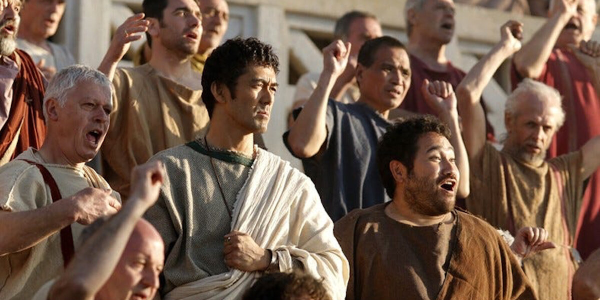 ルシウスは今日までの苦労を労われると、「ローマは1日にして成らず」と答えている。この言葉はセルバンテスの小説『ドン・キホーテ』で17世紀に登場した言葉だが、古くから存在してるともされている。出自不明の諺ということで、もしかしてルシウスが最初だったのかも? と思わせる演出になっている。