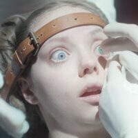 二つ目は、デカ目にするための施術。医師の「ゴージャスな美女になる」の一言に続き、麻酔なしで瞼に直接針と糸でつけまつ毛が縫い付けられる。それを見つめる看護師の瞳は不気味に白濁しており、エルヴィラの苦悶のうめきが響くのだった。